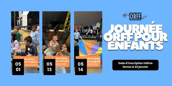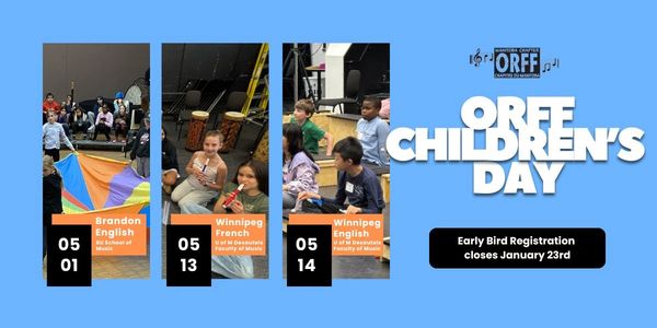 Throughout the day, five Orff trained clinicians will lead sessions in choral singing, recorder, movement, drumming and barred instrument ensembles. The day will culminate at 3:00 p.m. with a sharing session presented by the students.